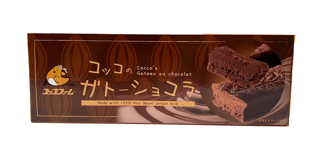 カカオの風味豊かなチョコレートを使用した、濃厚なチョコの味わいをベースに、熊本特産の阿蘇小国ジャージーミルクを加え、コクとまろやかさを感じられる柔らかな口どけのガトーショコラに焼き上げました。