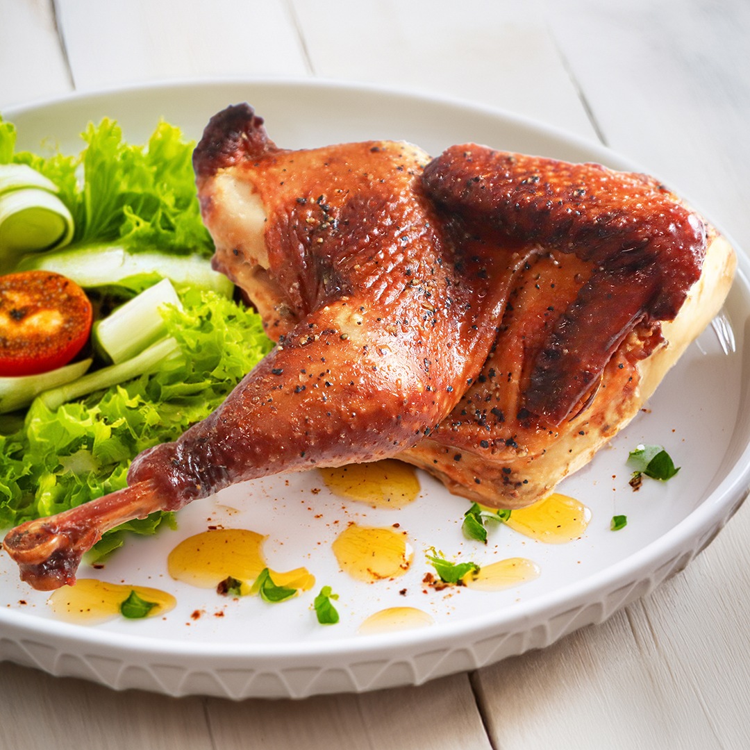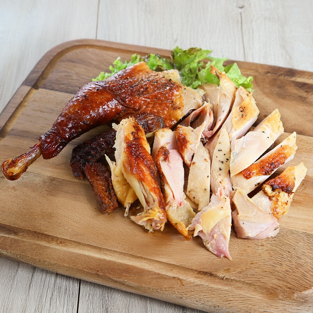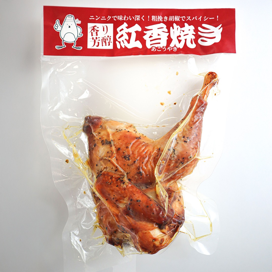 鶏の半身を特製のタレに一週間漬け込んだ後、さらにニンニクとショウガをベースにした香味液で味を深め、焼き上げました。香ばしい香りと肉汁、そして旨味を閉じ込めました。